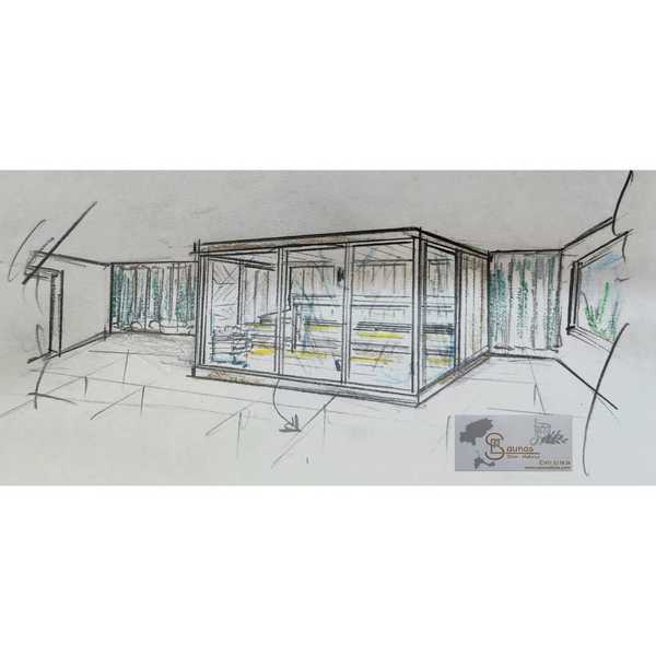 Usted es el que mejor sabe lo que necesita. Sencillamente díganos cómo se la imagina y nosotros dibujaremos su espacio Wellness ( Sauna, Baño de vapor ó Cabina de sal) personalizado.