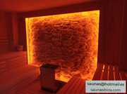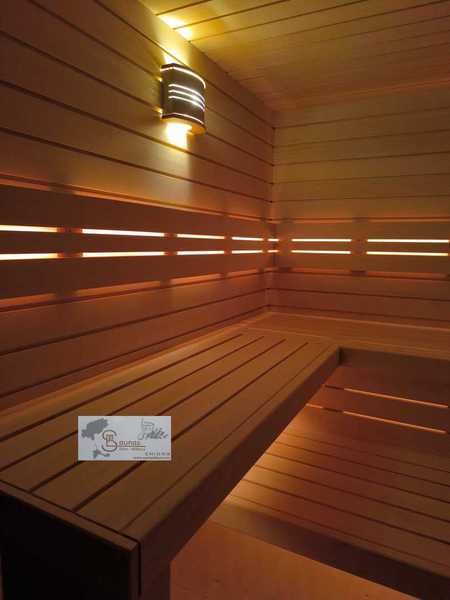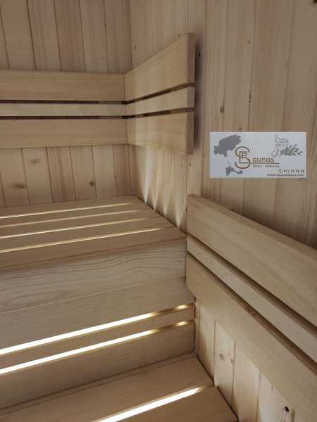 Fabricamos todo lo necesario que es de madera: paneles, techos, bancos, respaldos, apoyacabezas, protectores para calefactores, rejillas e incluso lámparas de sauna.